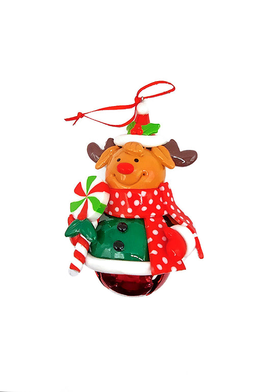 Christmas Ornament - Glossy Reindeer with Dangling Legs and Bell. Wizardi Festive Decoration F07-N2-15-SBB004C