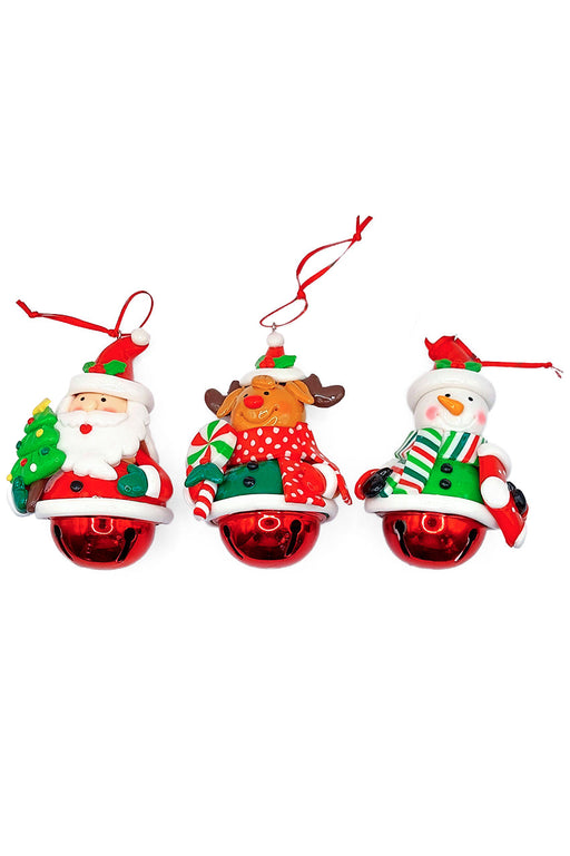 Christmas Ornament - Glossy Santa with Dangling Legs and Bell. Wizardi Festive Decoration F07-N2-15-SBB004A