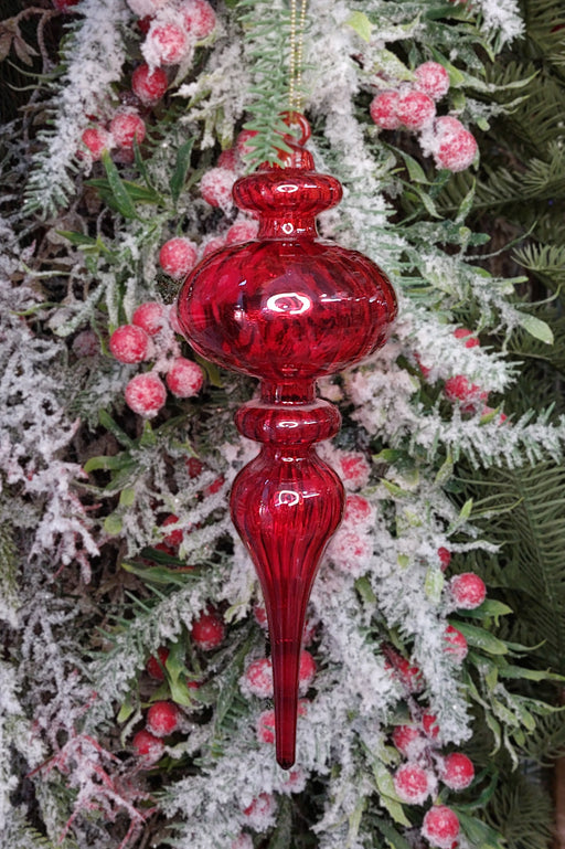 Red Twisted Spire Christmas Glass Ornament Wizardi F07M10-9